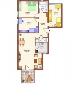 Auf ca. 95,70 m² ideal aufgeteilter Wohnfläche finden Sie 3 geräumige, helle Schlafzimmer,